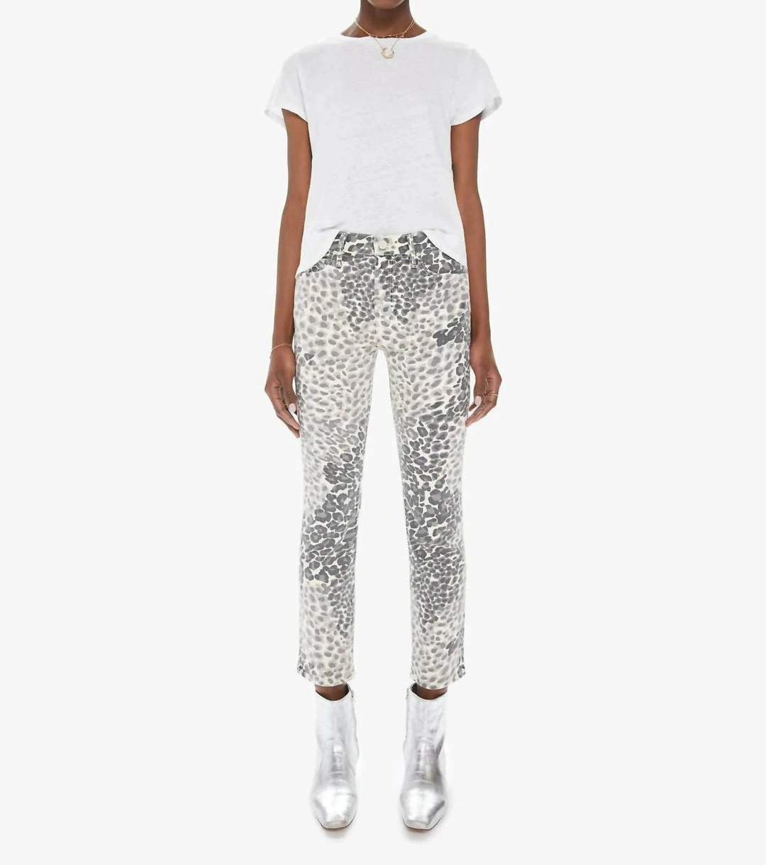 Our most popular mid-rise straight leg with an ankle-length inseam and a clean hem. Cut from a blend of cotton with a touch of stretch, the pants are designed in a faded grey leopard print.Made in Los Angeles.9 3/4″ Rise27 1/2″ Inseam13″ Leg Opening